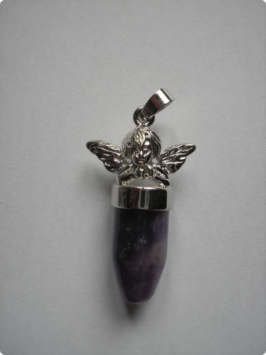 Der Anhänger ist ca. 38x22mm groß. Der Stein ist ein Amethyst.